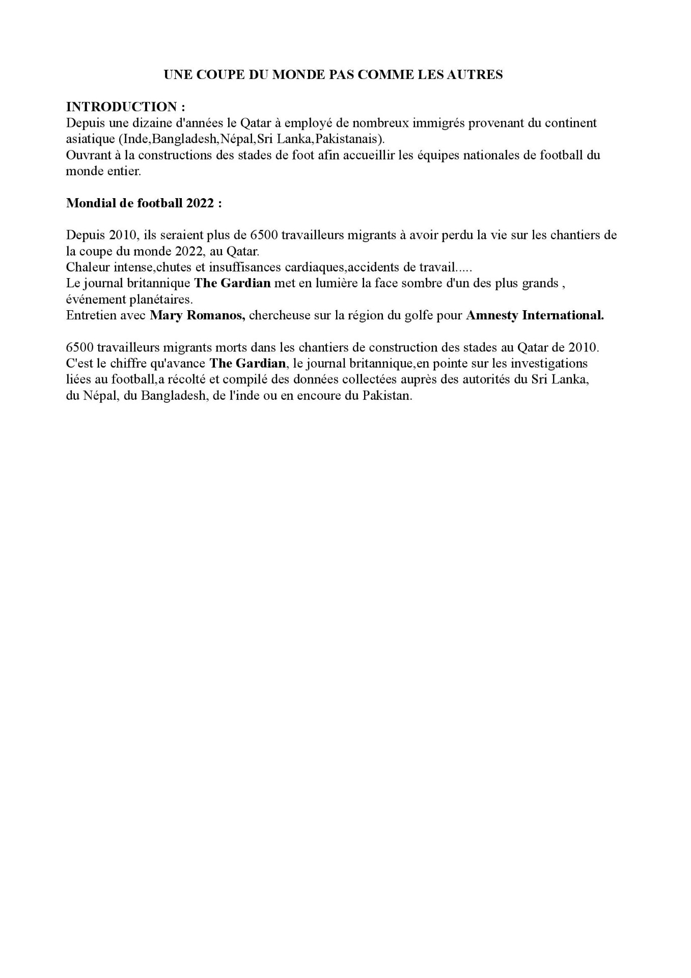 billet d'humeur coupe du monde 2022